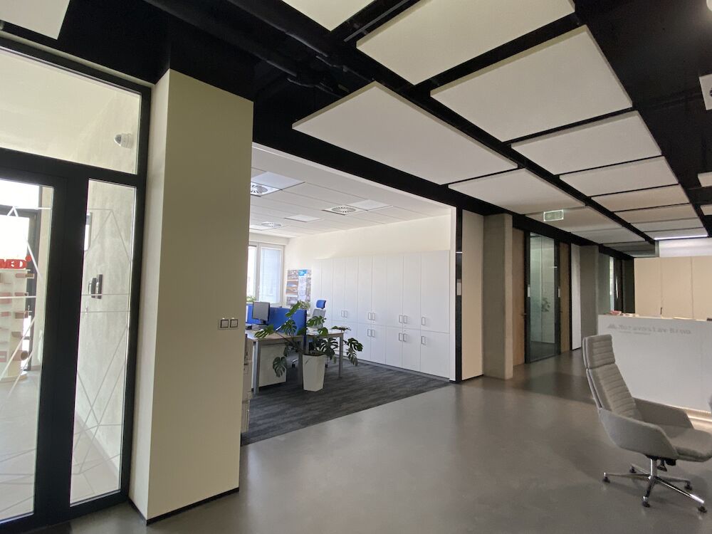 V průmyslově administrativním areálu byla nově vybudována čtyřpodlažní administrativní budova. V přízemí budovy jsou sklady, dílny a garáže. V ostatních patrech pak kanceláře. Záměrem investora bylo vybudovat moderní a komfortní prostředí pro práci. Nadstandardní byl požadavek na neprůzvučnost příček mezi jednotlivými pracovišti, kde našly využití akustické sádrokartonové desky LaSound. Při realizaci detailů ukončení příček v místě prosklených stěny byly použity tvarovky LaForm. Díky tvarovkám bylo provádění těchto detailů snazší a značně urychlilo proces výstavby. Nezanedbatelný je výsledný estetický vzhled detailů.