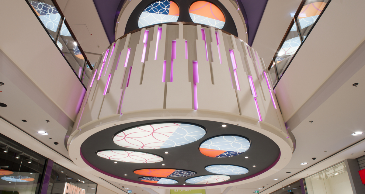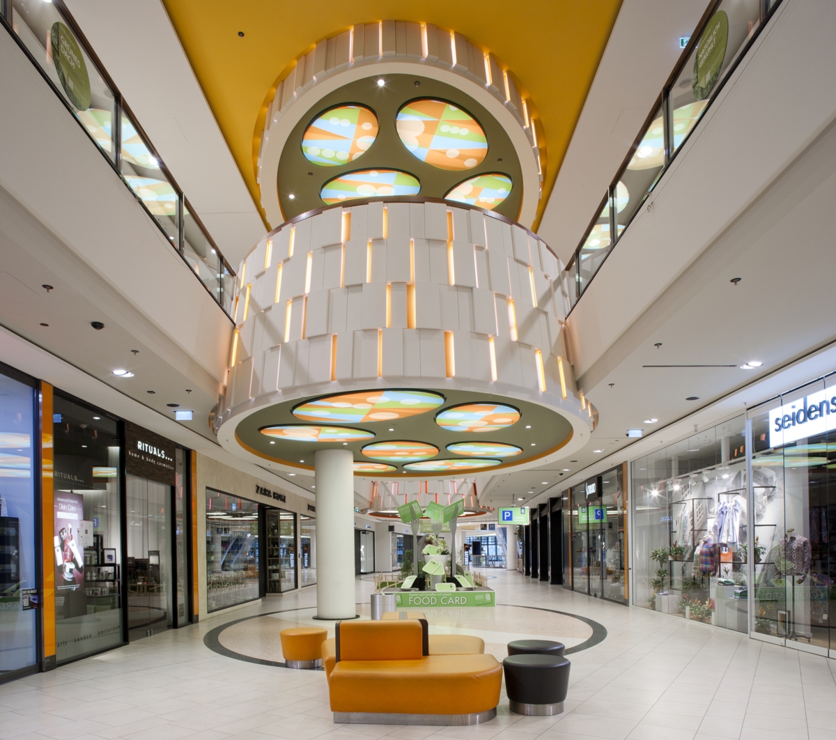 Všechny designové kapsle získávají díky integrovanému, barevnému osvětlení zvláštní účinek: Je to v důsledku zakulaceného tvaru a vyvolává asociace s designem fasády centra a Frankfurter Skyline.