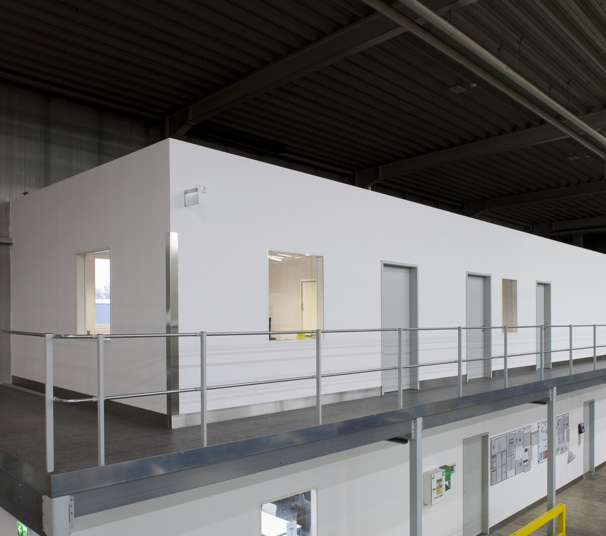 - Administrativní trakt uvnitř výrobní haly tak, jak jej společnost Wilo SE, celosvětově vedoucí výrobce čerpacích systémů v pobočce Minden vybudovala, klade vysoké požadavky na protihlukovou ochranu. Pomocí prostorových a stěnových systémů Siniat vznikla lehká nosná konstrukce, která tuto funkci vysoce efektivně splňuje a vytváří příjemné pracovní prostředí.